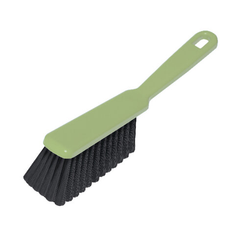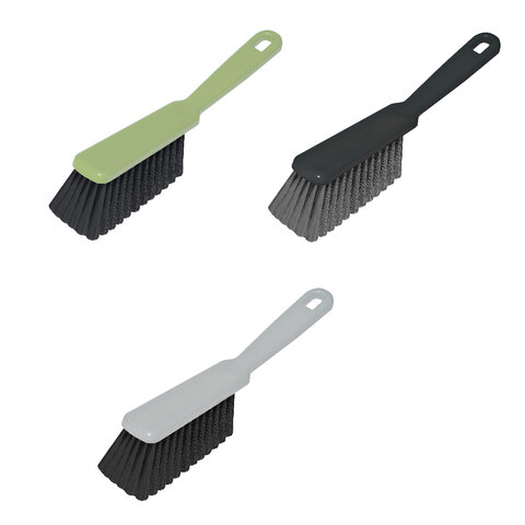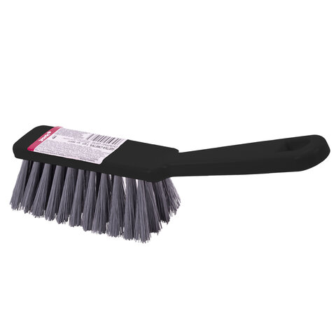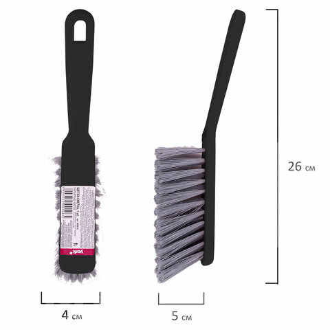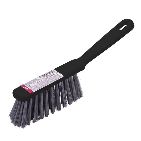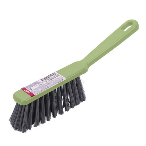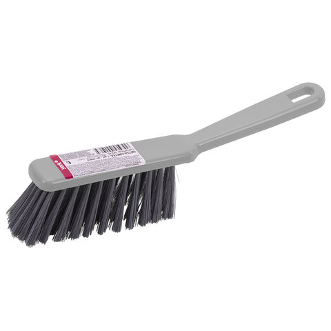 Щетина набита под углом, позволяющим захватить максимальную поверхность. Очень удобная ручка. Щетка имеет отверстие для крючка. Прекрасно подходит к совку этого же типа.