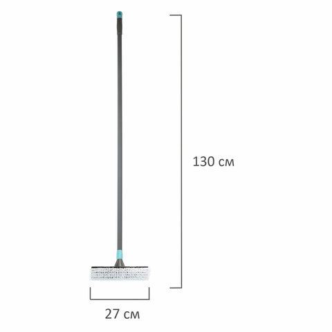 Швабра со щеткой-шробер + водосгон, универсальная для сухой и влажной уборки, черенок 130см, ширина 27см, щетина 3,5см, LAIMA HOME, 606806