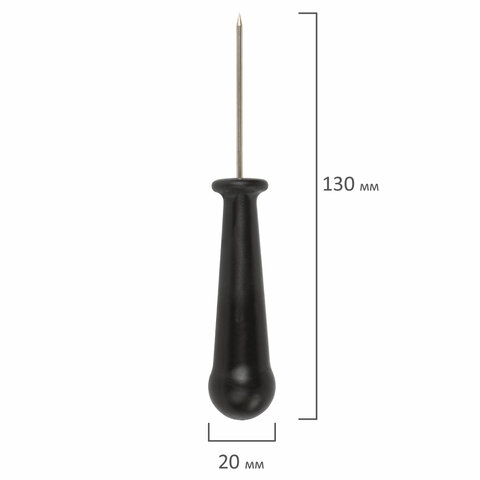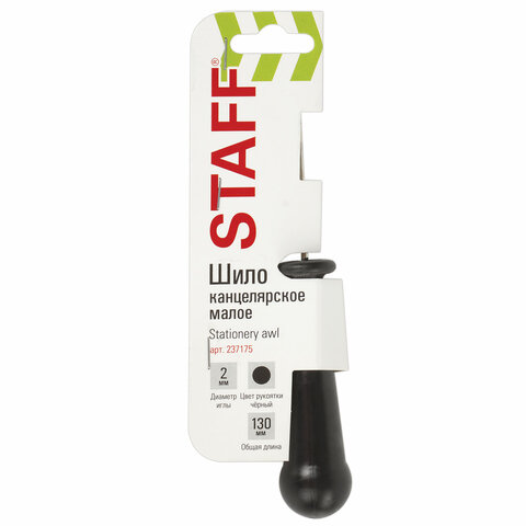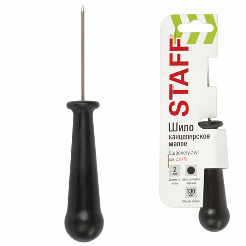 Шило канцелярское малое STAFF, общая длина 130 мм, диаметр иглы 2 мм, ручка черная, 237175