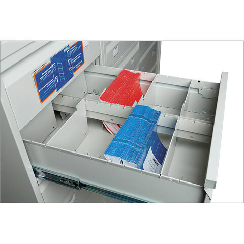 Картотечный шкаф обеспечивает эффективный и рациональный способ хранения документов формата А5 (149х210 мм). Телескопические направляющие обеспечивают плавный ход ящика даже при полной нагрузке.