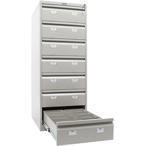 Шкаф картотечный ПРАКТИК "AFC-07", 1327х515х631мм, 7 ящиков под формат А5 (210х149 мм), формат папок Foolscap или A4 (БЕЗ ПАПОК)