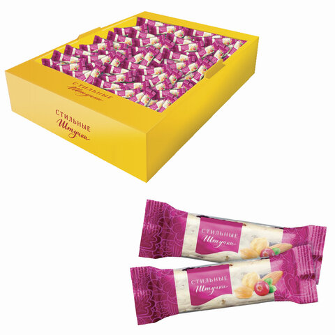 Конфеты СТИЛЬНЫЕ ШТУЧКИ нуга с клюквой и орехами, гофрокороб 2 кг, 2488