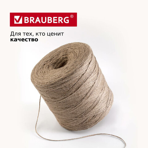 Шпагат джутовый банковский полированный, длина 1200 м, диаметр 1,8 мм, линейная плотность 1200 текс, BRAUBERG, 600396