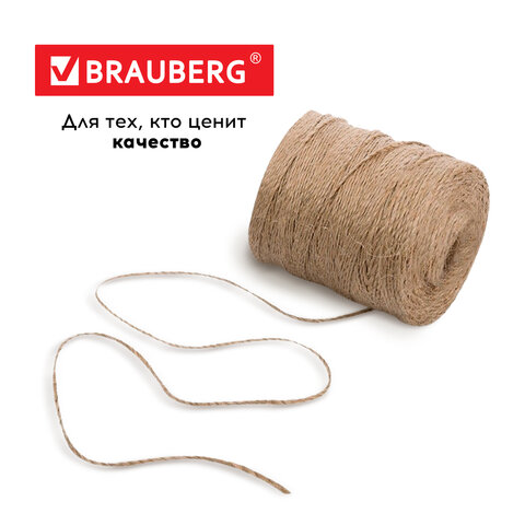 Шпагат джутовый полированный длина 1200 м диаметр 1,8 мм, 2-х ниточный, BRAUBERG, 607942