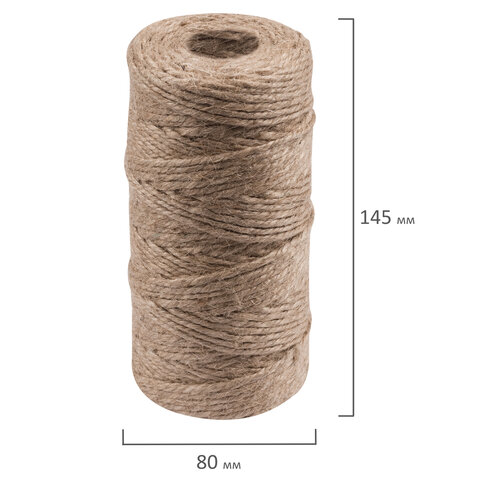 Шпагат джутовый упаковочный полированный, длина 500 м, диаметр 1,5 мм, 1200 текс, BRAUBERG, 605008