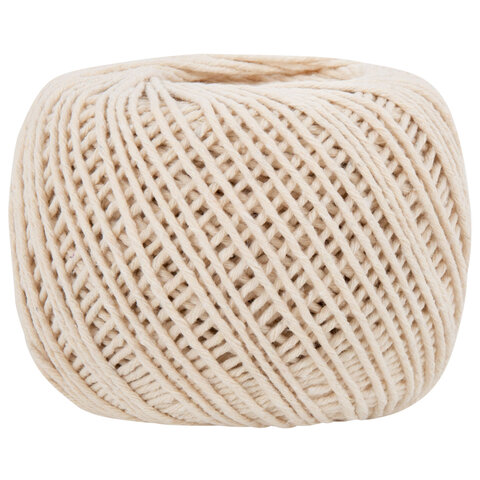Шпагат хлопковый для прошивки документов, вязания, макраме, длина 200 м, диаметр 2 мм, BRAUBERG, 700363