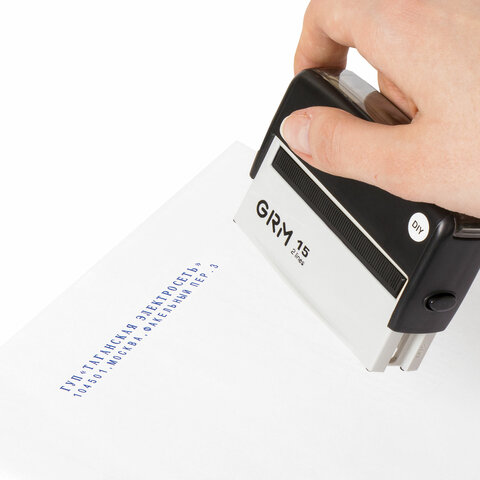Изготовлен на основе оснастки GRM 15. Прозрачное окошко обеспечивает точное позиционирование оттиска. Специальные держатели позволяют не пачкать руки при смене подушки. Возможность нанесения логотипа на лицевую поверхность.