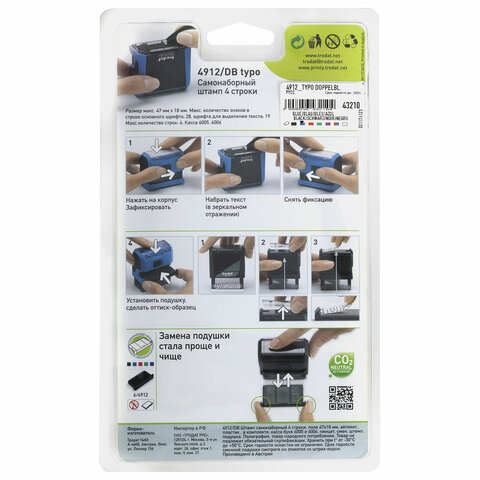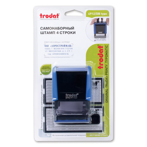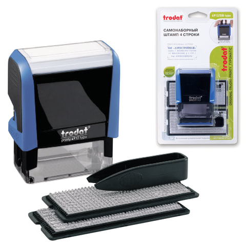 Штамп самонаборный 4-строчный, оттиск 47х18 мм, синий без рамки, TRODAT 4912 P4, КАССЫ В КОМПЛЕКТЕ, 43210