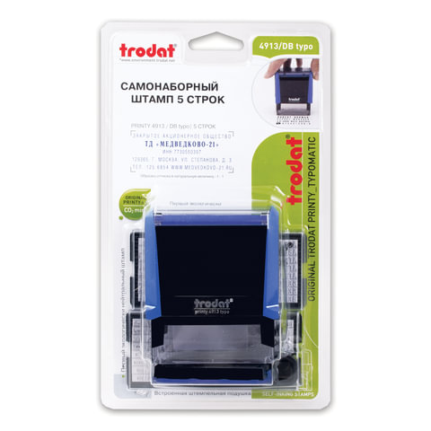 Штамп самонаборный 5-строчный, оттиск 58х22 мм, синий без рамки, TRODAT 4913 P4, КАССЫ В КОМПЛЕКТЕ, 43211