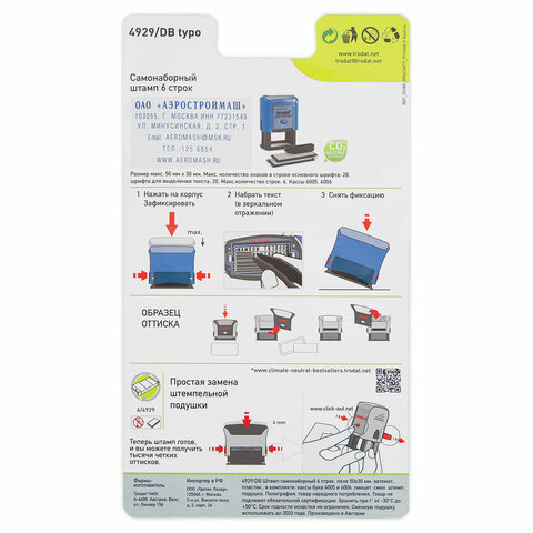 Самонаборный штамп TRODAT предназначен для создания оттиска с собственным содержанием, что позволяет существенно экономить рабочее время при нанесении необходимой информации на документы. Обладает возможностью изменения текста.