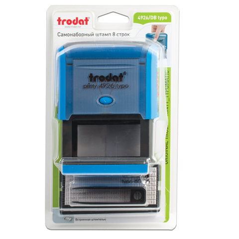 Штамп самонаборный 8-строчный, оттиск 75х38 мм, синий без рамки, TRODAT 4926 P2, КАССЫ В КОМПЛЕКТЕ, 167041