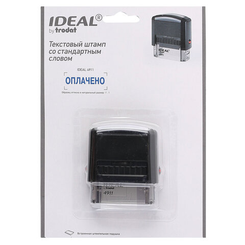 Штамп стандартный "ОПЛАЧЕНО", оттиск 38х14 мм, синий, TRODAT IDEAL 4911 DB-1.2, 161487/214130