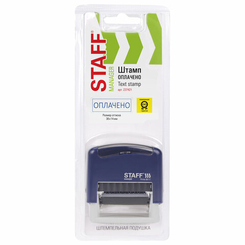 Штамп стандартный STAFF "ОПЛАЧЕНО", оттиск 38х14 мм, "Printer 9011T", 237421