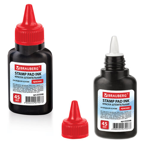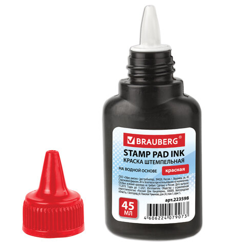 Краска штемпельная BRAUBERG, красная, 45 мл, на водной основе, 223598