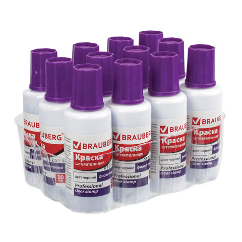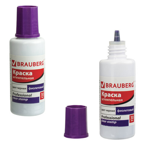 Краска штемпельная BRAUBERG PROFESSIONAL, clear stamp, фиолетовая, 30 мл, на водной основе, 227982