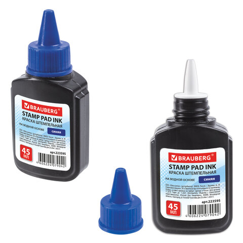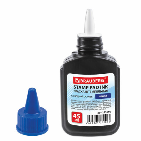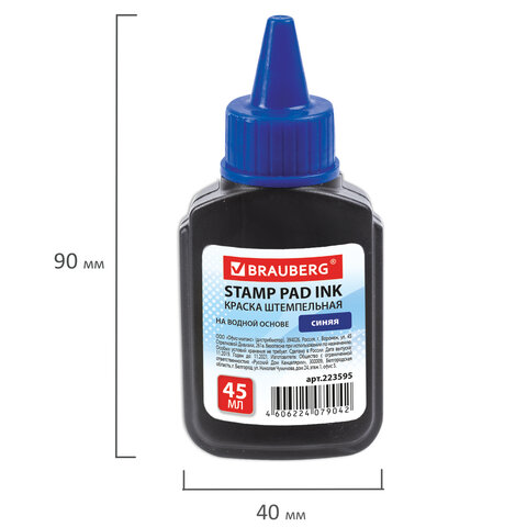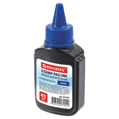 Краска штемпельная BRAUBERG, синяя, 45 мл, на водной основе, 223595