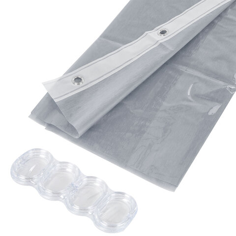 Шторка для ванной EVA, 180х200 см, кольца в комплекте, СЕРЫЕ ЛИНИИ, PRIMILA (ПРИМИЛА), 700107