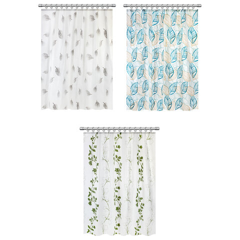 Шторка для ванной PEVA, 180х180 см, кольца в комплекте, дизайн ассорти, РАСТЕНИЯ, PRIMILA (ПРИМИЛА), 700076
