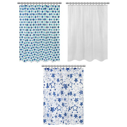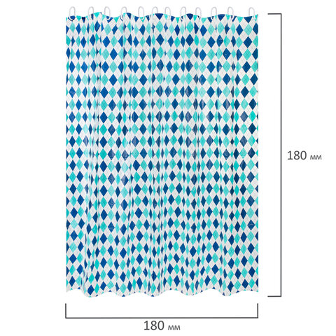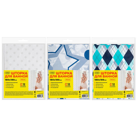 Шторка для ванной PEVA, 180х180 см, кольца в комплекте, дизайн ассорти, УЗОРЫ, WBZ (ВБЗ), 700068