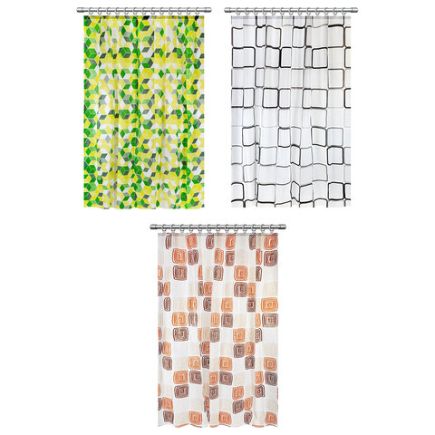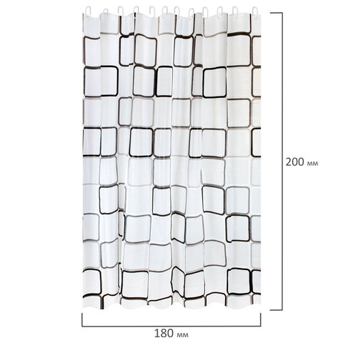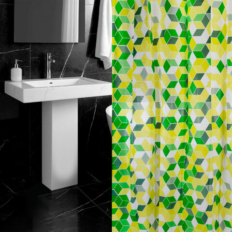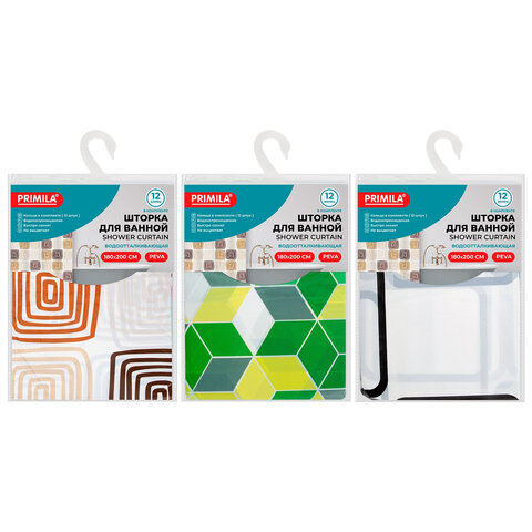 Шторка для ванной PEVA, 180х200 см, кольца в комплекте, дизайн ассорти, ФИГУРЫ, PRIMILA (ПРИМИЛА), 700075