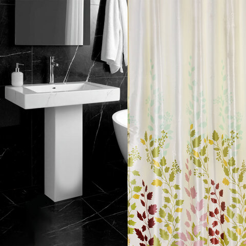Шторка для ванной ПОЛИЭСТЕР, 180х180 см, кольца в комплекте, ФЛОРА, PRIMILA (ПРИМИЛА), 700080