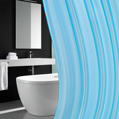 Шторка для ванной ПОЛИЭСТЕР, 180х200 см, кольца в комплекте, ГОЛУБОЙ БРИЛЛИАНТ, PRIMILA (ПРИМИЛА), 700096