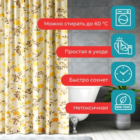 Шторка для ванной ПОЛИЭСТЕР, 180х200 см, кольца в комплекте, РАСТЕНИЯ, PRIMILA (ПРИМИЛА), 700085