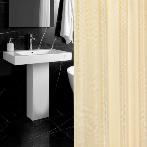 Шторка для ванной ПОЛИЭСТЕР, 180х200 см, кольца в комплекте, ЗОЛОТОЙ БРИЛЛИАНТ, PRIMILA (ПРИМИЛА), 700095