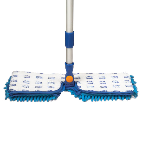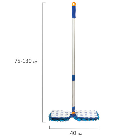 Швабра двусторонняя 40 см, телескопический черенок 130 см (алюминий), резьба 1,6 см, микрофибра, LAIMA, 601465
