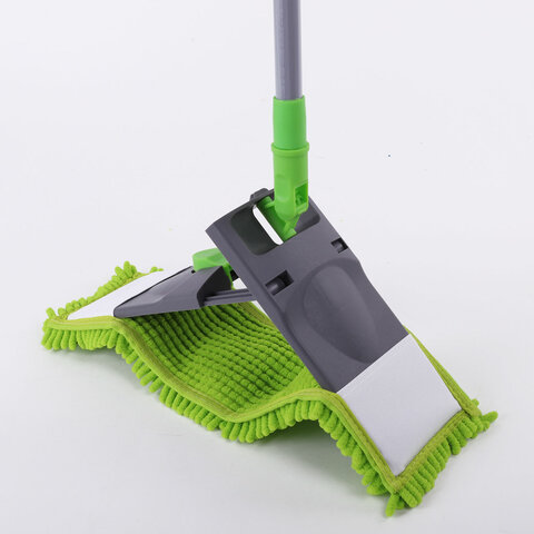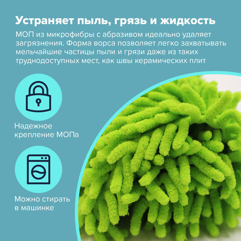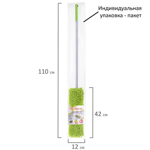 Швабра ЛЮБАША с черенком длиной 110 см, плоским флаундером и насадкой из ворсистой микрофибры (синель/букли) в комплекте в индивидуальной упаковке. Она станет незаменимой помощницей в офисе или дома.