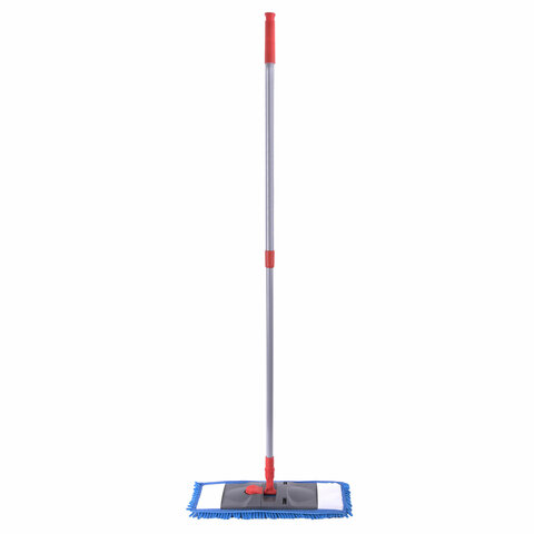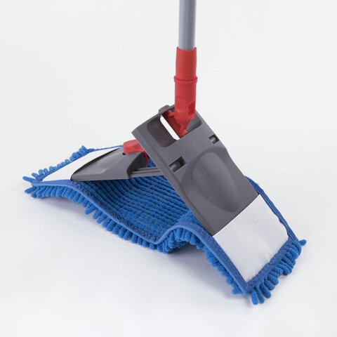 Швабра с флаундером 40 см, черенок 80-120 см, еврорезьба, насадка МОП микрофибра СИНЕЛЬ, индивидуальная упаковка пакет, LAIMA, 606314