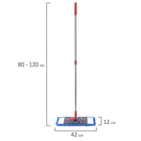 Швабра LAIMA HOME с телескопическим черенком длиной 80-120 см, плоским флаундером и насадкой из ворсистой микрофибры (синель/букли) в комплекте в индивидуальной упаковке. Она станет незаменимой помощницей при создании чистоты в офисе или дома.
