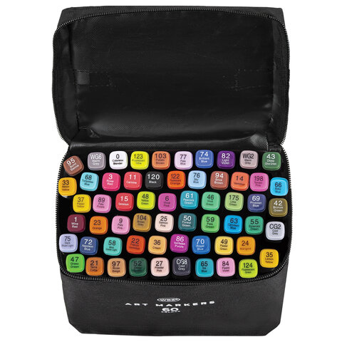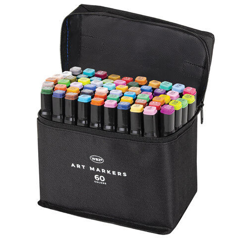 Маркеры для скетчинга двусторонние, НАБОР 60 шт., текстильный чехол, WBZ (ВБЗ), 152574
