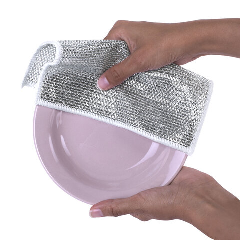 Тряпки-салфетки металлические, сетка-скрабер, 20х20 см, КОМПЛЕКТ 10 штук, для мытья посуды и уборки, не оставляет царапин, LAIMA, 700065