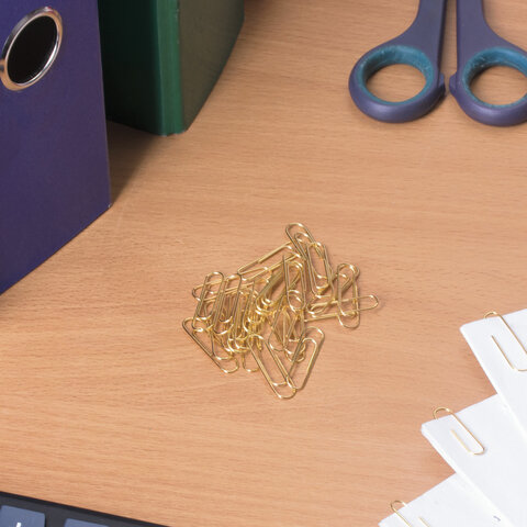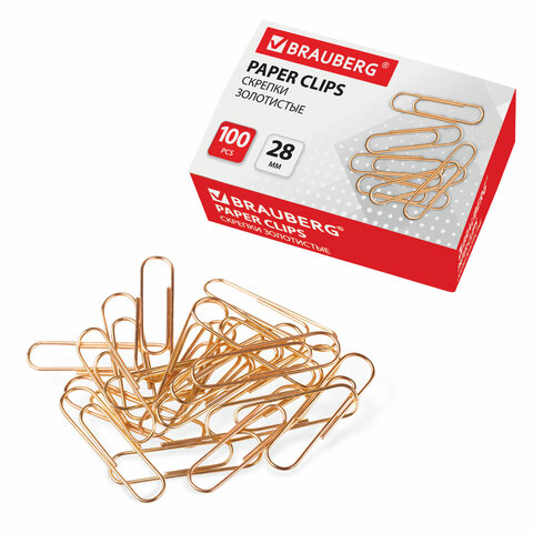 Скрепки BRAUBERG, 28 мм, золотистые, 100 шт., в картонной коробке, 221529