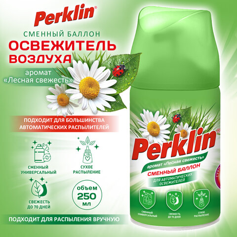 Сменный баллон 250 мл PERKLIN (ПЕРКЛИН) "Лесная свежесть", для автоматических освежителей, универсальный, 609799