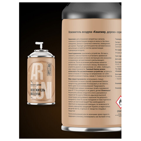 Сменный баллон 250мл ARLUNI "Кашемир и дерево" – это эффективный аэрозольный ароматизатор для помещений