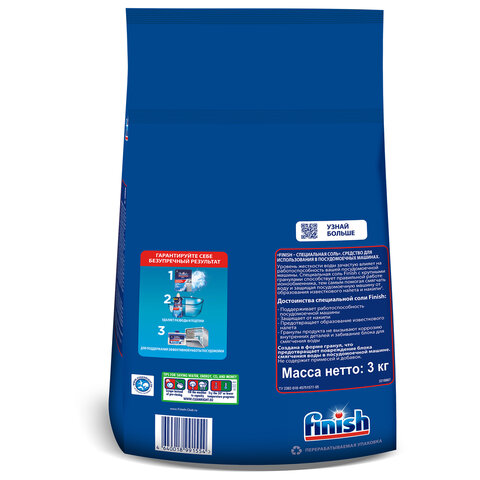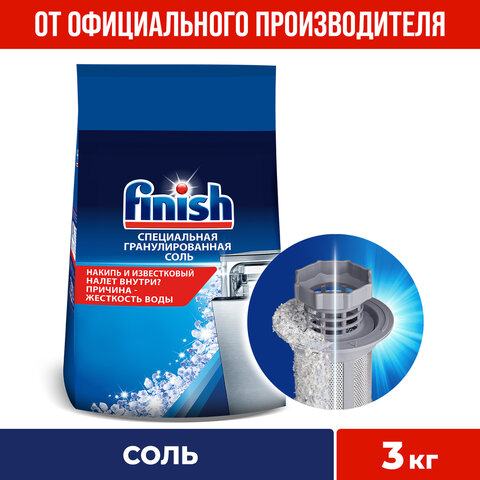 Соль для смягчения воды и удаления накипи в посудомоечных машинах 3 кг FINISH, 3072341