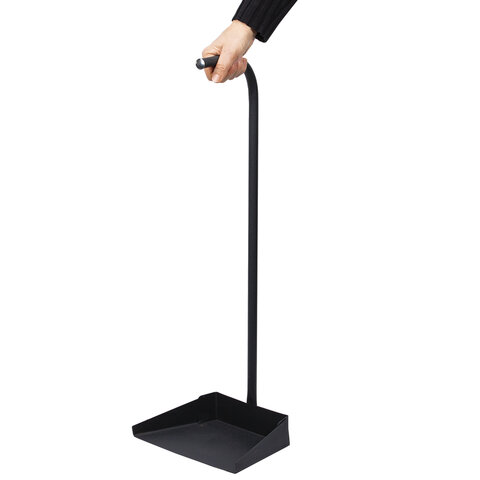 Совок для мусора 28х19см металл, ПРОЧНЫЙ высокая Г-образная ручка 75см, порошковый окрас, темно-серый, дом, офис, улица, ГРАНДМАСТЕР, 700351