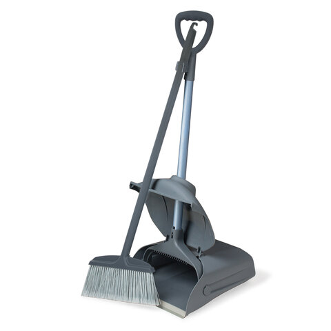 Совок для мусора КОМПЛЕКТ щетка + 2 рукоятки по 94 см, закрывающаяся крышка ЛОВУШКА, серый LAIMA PROFESSIONAL, 601508