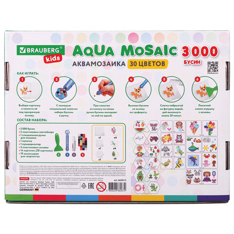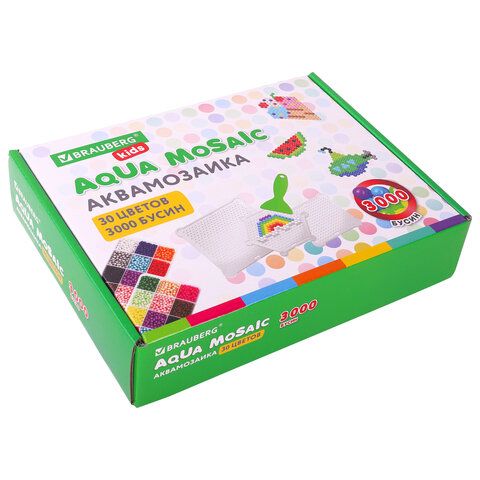 Аквамозаика 30 цветов 3000 бусин, с трафаретами, инструментами и аксессуарами, BRAUBERG KIDS, 664915