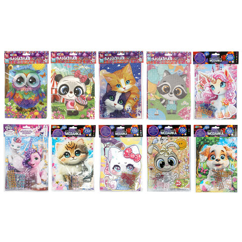 Алмазная мозаика детская АССОРТИ 10 видов, 17х23 см, на картоне, МУЛЬТИ АРТ, 5940
