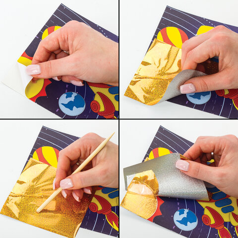 Набор для творчества "Аппликация из фольги", "Ракета", самоклеящаяся основа 20х15 см, ЮНЛАНДИЯ, 662383