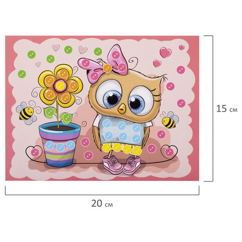 Набор для творчества "Аппликация из пуговиц", "Забавная сова", основа 20х15 см, ЮНЛАНДИЯ, 662391