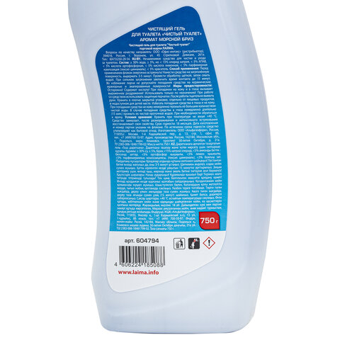 Гелеобразное средство для чистки и дезинфекции санузла LAIMA PROFESSIONAL, отдушка "Морской бриз". Средство удаляет ржавчину, известковые отложения и другие загрязнения.