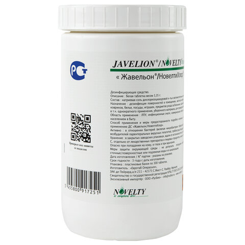 Средство дезинфицирующее 1 кг, ЖАВЕЛЬОН/НОВЕЛТИ ХЛОР, таблетки 300 штук
