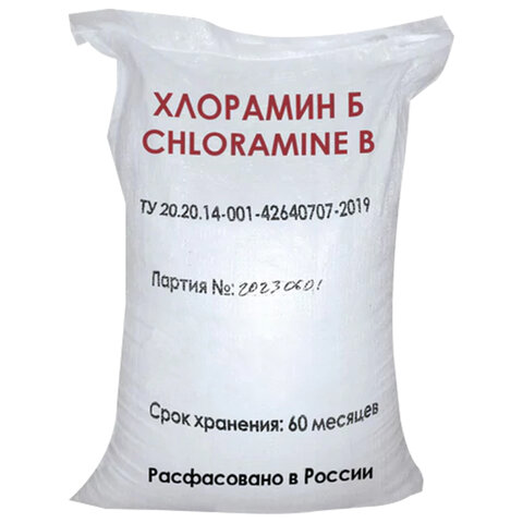 Средство дезинфицирующее ХЛОРАМИН-Б технический, Россия, пакет 300 г, АКВА, честный знак