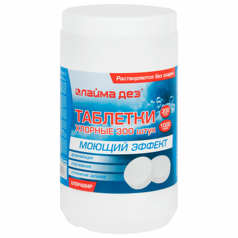Средство дезинфицирующее с моющим эффектом, таблетки хлорные 300 шт., 1 кг, банка, ЛАЙМАДЕЗ, 609419