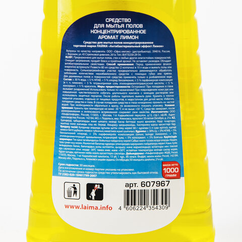 Средство для мытья пола и стен 1 кг LAIMA PROFESSIONAL концентрированное, "Антибактериальный эффект. Лимон", 607967