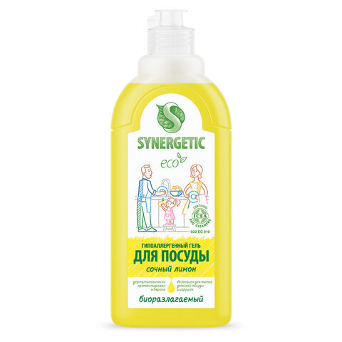Гель для мытья посуды антибактериальный 500 мл, SYNERGETIC "Лимон", 103051